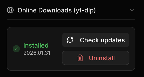 Sequence Pro can install and manage yt-dlp from the app. After setup, supported URLs can be added to your queue like local sources.